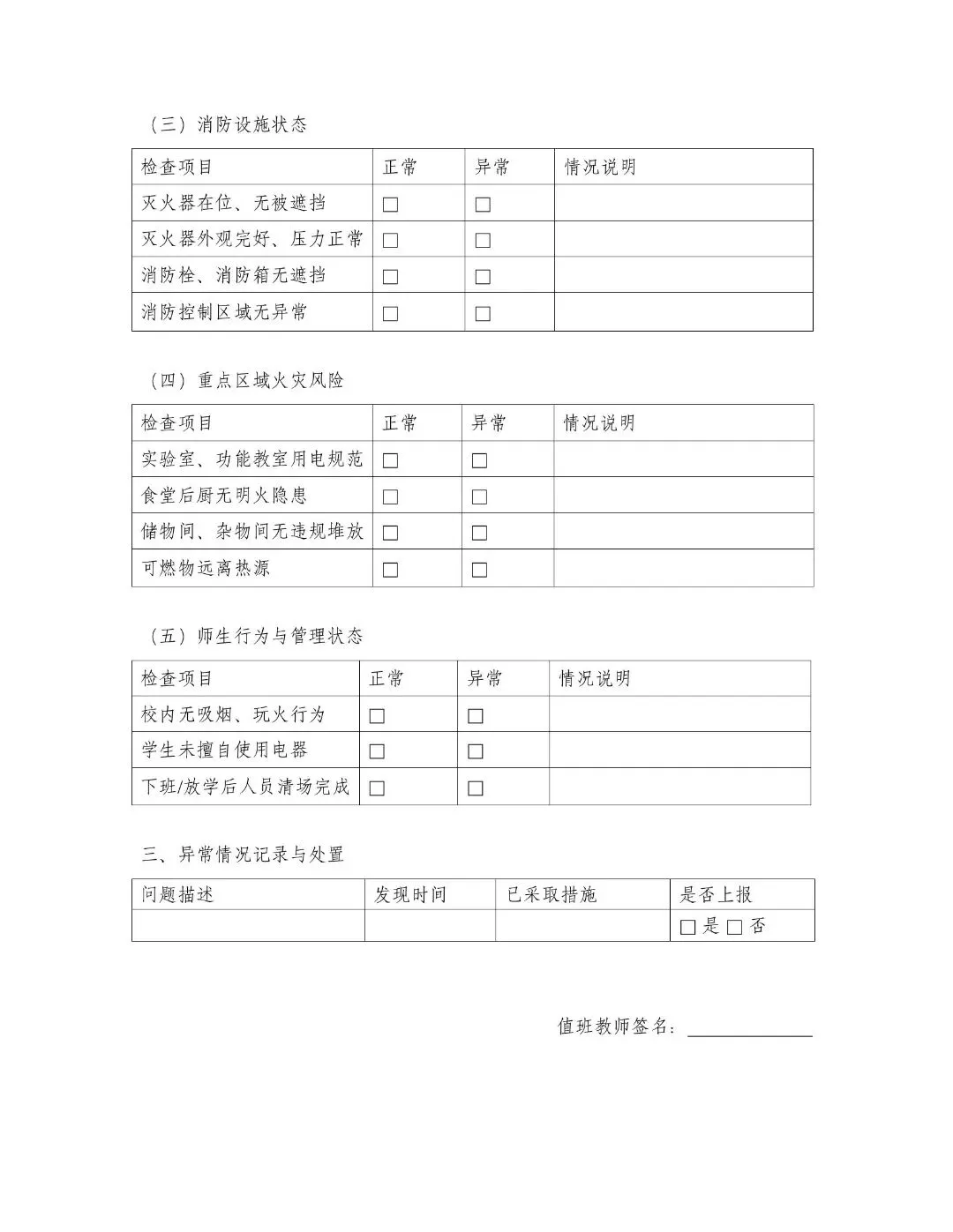 校内全面禁止吸烟、玩火等危险行为,加强师生安全宣传教育。严禁学生擅自携带、使用各类电器设备,杜绝违规用电行为。下班及放学后,安排专人开展全面清场检查,确认各区域无人员滞留,关闭门窗及电源,筑牢校园安全防线。