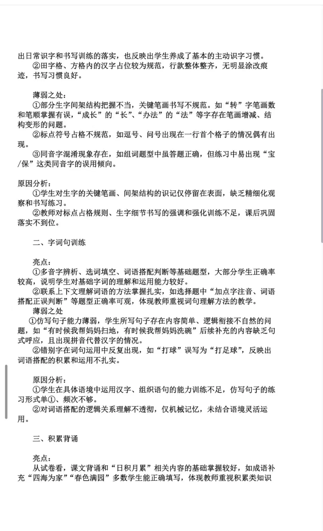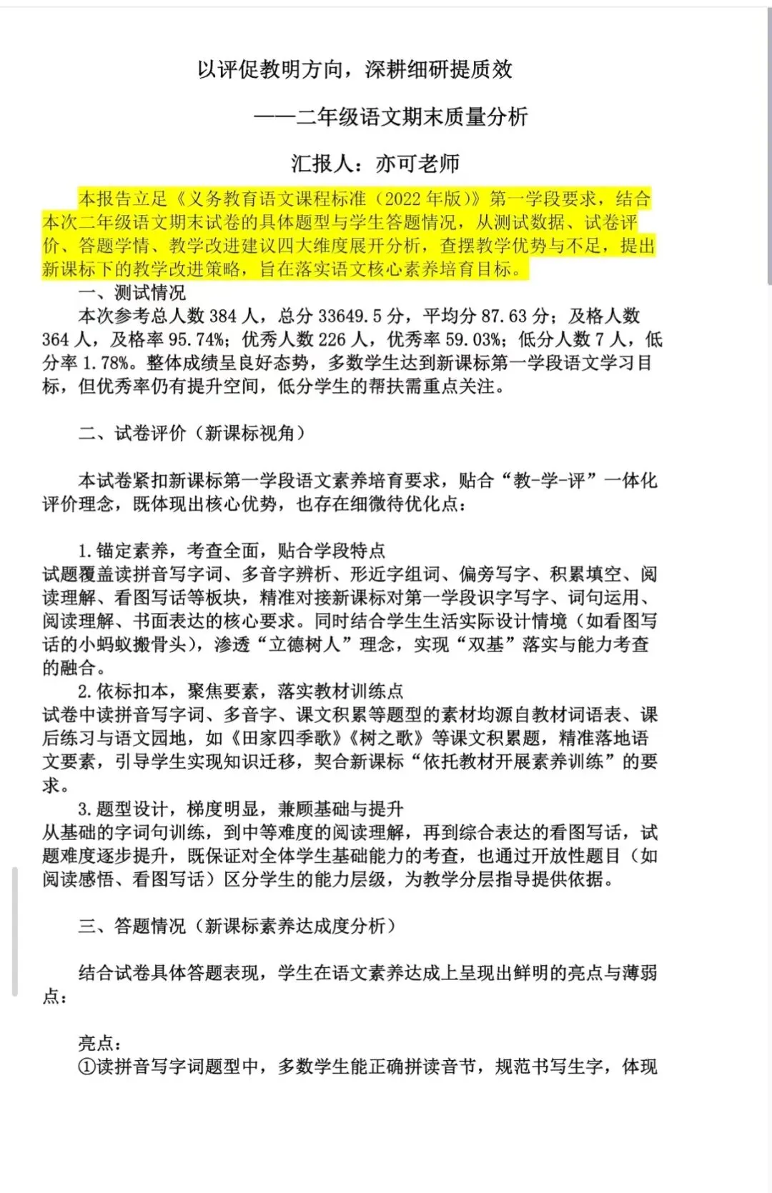 二年级上册语文期末质量分析电子完整版有偿分享,不喜勿扰!