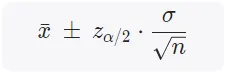 在已知总体为正态分布,总体方差为σ,抽样量为n,抽样均值为x_bar,临界值为z时,不同置信水平下的置信区间计算方式为: