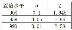 对于不同的置信水平,临界值Z分别为: