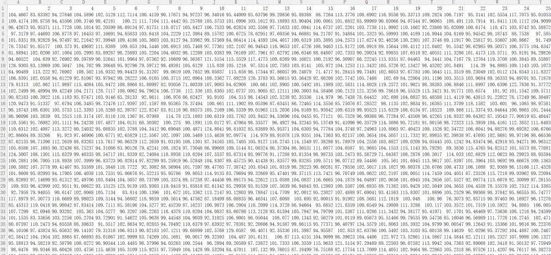 在sheet2中使用下面的函数生成1000行数据,每行25个。得到的数据每一行表示一次抽样,一次抽样共计25个。