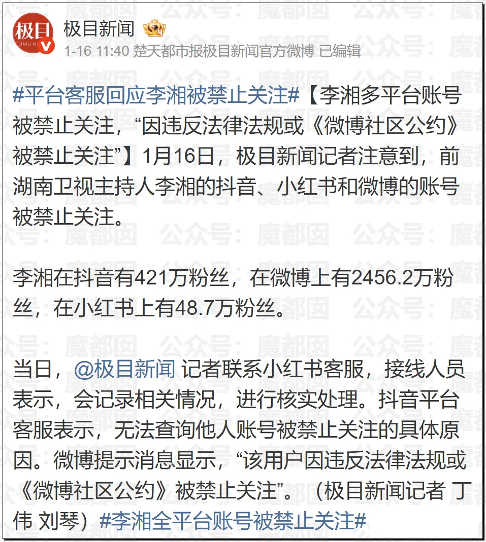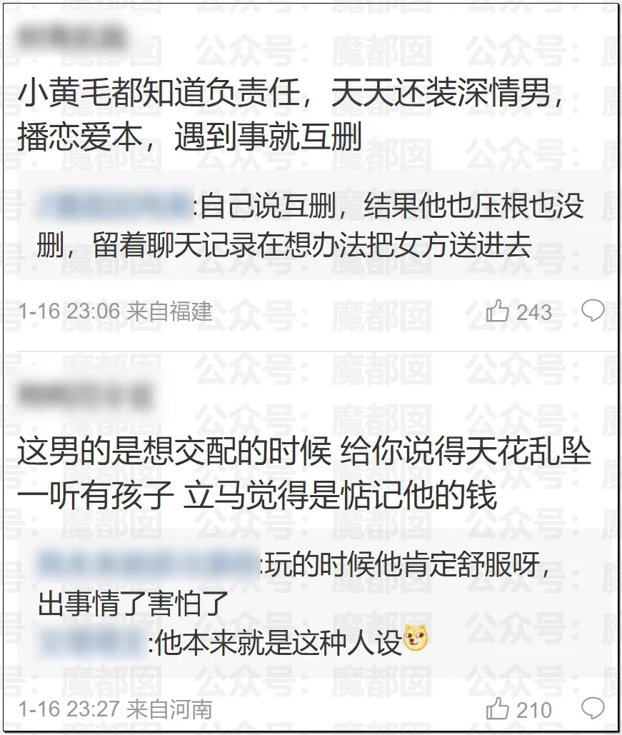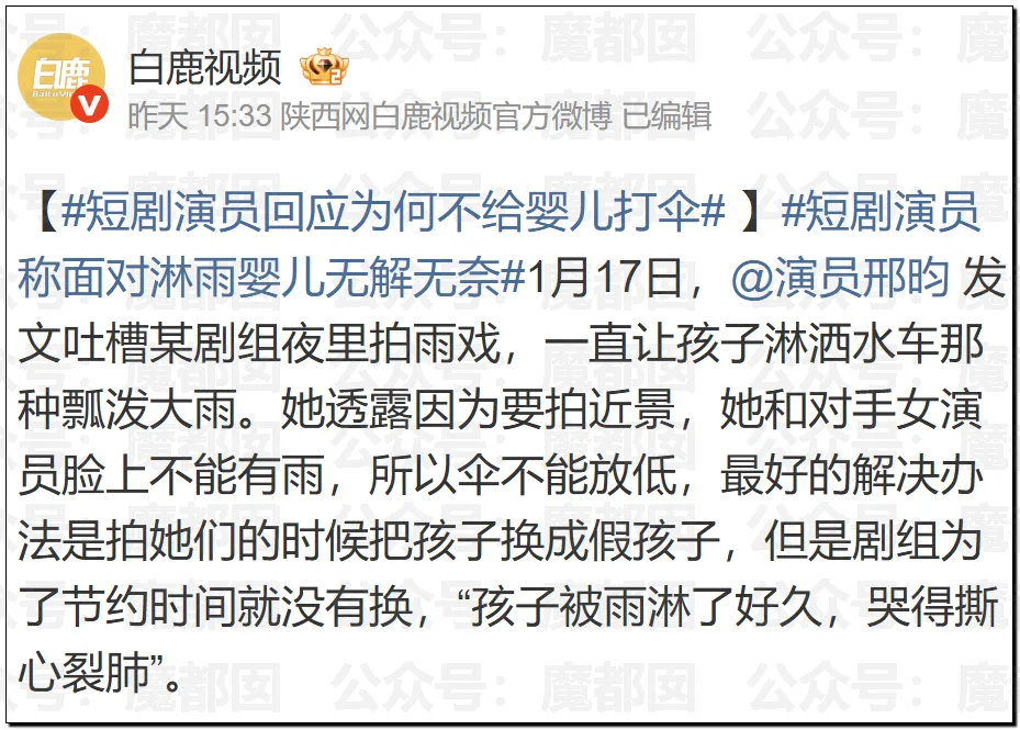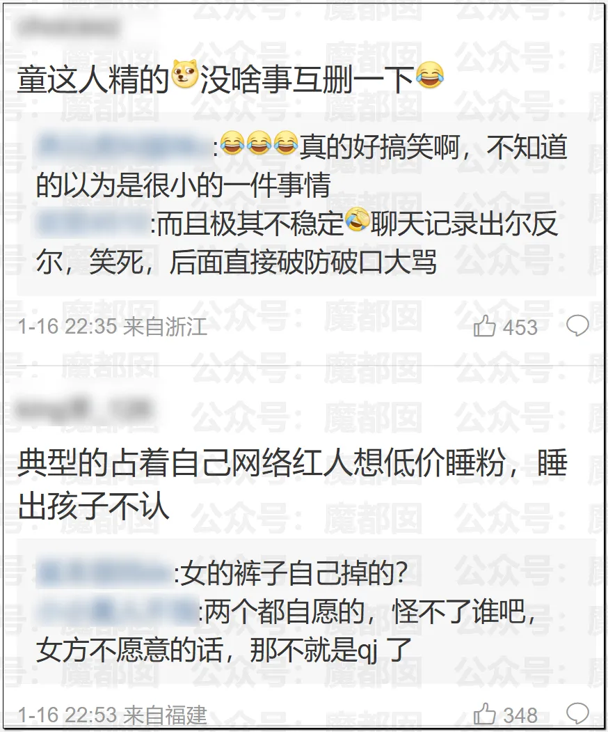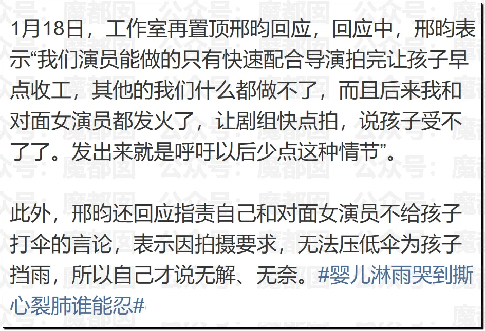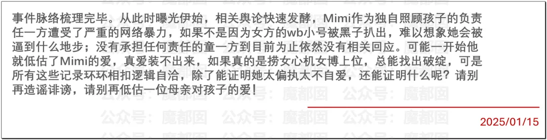 昨天的一篇文章没了,不知道是因为西贝还是因为那个爆料自己老公的女生。如果细心的网友也会发现,前几天的那篇大国工匠的文章也悄无声息的没了,所以现在还能写什么?真的是无语死了……暂且胡乱吃点瓜吧。现在的瓜是剪不断理还乱。我们把这几天没有来得及写的一并放出来,如果大家不能接受这种浑身毫无关联的吃瓜合集可以迅速关闭本文节省时间。随即苏醒过来,整个人的状态已经完全不对了,摇摇晃晃。整个教室的同学们都傻了,纷纷起身查看这个同学的伤势。这一下子的局部动图(图片尺寸我们故意缩得比较小,请见谅):真的……现在的小孩子下手没轻没重,非常的夸张,我们不知道双方有什么仇怨,这一下子是会死人的……后脑勺是最脆弱的地方,即使不死后续既有可能给被打的那个孩子带来一辈子的后遗症。如果有知情的网友请及时给我们消息,我们十分关注这个被打的孩子情况如何了,更关心这个打人的孩子怎么处理,事发2026年1月13日,这个打人的孩子怎么看都超过14岁了,不知道到没到16周岁,这是非常严重的刑事犯罪,希望能让他的青春年月在监狱里度过。这种人现在全国各地到处都有,是否需要整治一下了?网友们也是非常愤怒:今天还有一个新闻也是恶臭的可以,拍短剧,找婴儿来,结果让婴儿全程淋雨,简直匪夷所思。此视频一经曝光,顿时引发评论区众怒。有网友留言“孩子才这么大,得了肺炎怎么办?”“看得心疼又愤怒”,该演员也在评论区回复:“很多剧组都这样,真心希望孩子们回归校园和童年。”甚至有儿童演员的家长表示,淋个雨算什么,有的儿童演员还会挨打挨骂。这场雨戏的荒谬之处在于,对于孩子的伤害本可完全避免。影视行业用仿真道具替代真人完成高危场景,早已是成熟惯例,一个高仿婴儿道具的成本并不高昂,更是远低于孩子受凉生病的治疗费用。但在短剧“时间就是金钱”的生产逻辑里,一个孩子的安危竟抵不过换道具的时间,可谓是对未成年人的极端漠视。在这场令人揪心的事件里,家长的沉默与妥协更显刺眼。作为孩子的法定监护人,家长本应是儿童演员最坚实的保护伞,却并未对剧组不合理的拍摄要求说不。这种“默许式”纵容,无异于亲手将孩子推向了被伤害的边缘。这种监护责任的失守,让儿童演员的权益更加难以保证。随着短剧的飞速发展,多元的剧情对于儿童演员的需求也愈发增加。然而,行业的发展不能以牺牲未成年人权益为代价,孩子更不应是剧组“道具”。要想遏制这种乱象,需要多方位筑牢防线。家长必须摆正心态,不要盲目追名逐利,应将孩子的健康和权益放在首位,履行好自身监护的法定职责。很多网友问我们李湘到底什么情况?目前好像是全平台封号。一般来说,要达到这个程度,绝对不是平台自己弄的,媒体报道:怪不得前几天王诗龄返回英国上学时,是王岳伦亲自去送机,全程没见到李湘的身影。当时就有网友疑惑他怎么没去送王诗龄,现在想来倒是能对上了。李湘上一次公开露面还是在澳门跨年,还发布了王诗龄和张艺兴的跨年合影,两人笑容灿烂,配文也满是温馨和对新年的期待。谁能料到,这条看似平常的动态,竟成了账号停更的最后一条内容。除了账号被封,更让人意外的是她的公司有大的变动。有消息称,李湘名下关键的20家企业中,已有14家完成注销,这一数据着实惊人,要知道她早在2023年就宣布了退休,本以为是安心享受生活,如今账号和企业接连出现状况,难免让人浮想联翩。截至目前,李湘方面始终保持沉默,既没回应账号被封的原因,也没解释企业注销的缘由。没人说得清这到底是平台的暂时调整,还是彻底封号的前兆,只能说肯定出事了,至于事情有多大,谁都不知道,只能静观其变。网友们还在热议:是的,你没看错,就是字面意思,国宝大熊猫被造谣,而且还是造的同性H谣……这是人类能想出来的剧情?说实在话,我们也不知道为何要去造这个谣……目的是什么……唉……最后把这几天依然爆火的那个给童锦程生孩子的女生后续爆料写一下,这个女生后续好像得到一位博士网友的帮助,重新整理了一遍和童锦程的过程,制作成了PPT,网友们的口风似乎得到了一些转变。这个女生之前在自己的群内自曝过,的确是童锦程喜欢的那种类型,脸蛋漂亮,身材火爆:后续她制作了一整套PPT,因为这个PPT是横版的,直接放上来大家肯定需要一张一张点开,看得太累,所以我们单独取重点贴出来。然后就是情人到分手,注意,她特别指出和童锦程是谈恋爱。只能说这位帮忙的博士姐姐出手思路果然完全不一样,各类证据整理的清清楚楚。接下来很重要,女方实证男方在骗她,双方是以谈恋爱形式交往的。大家都知道,后续童锦程是否认恋爱的,但是女方现在的实证就是双方当时的确处于恋爱期。当时童在播恋爱本,有一段几秒钟非常吃惊的画面,后续大家才知道,镜头外他偶遇到了女主。分手后童锦程依然和女方鼓掌,这个操作我们也是无语……完全就把女方当工具?后续的聊天记录大家应该都看到过,可以看到,童锦程是完全没有和她生育孩子的想法。目前这个事情的讨论出现了两极分化,一边是支持女方: