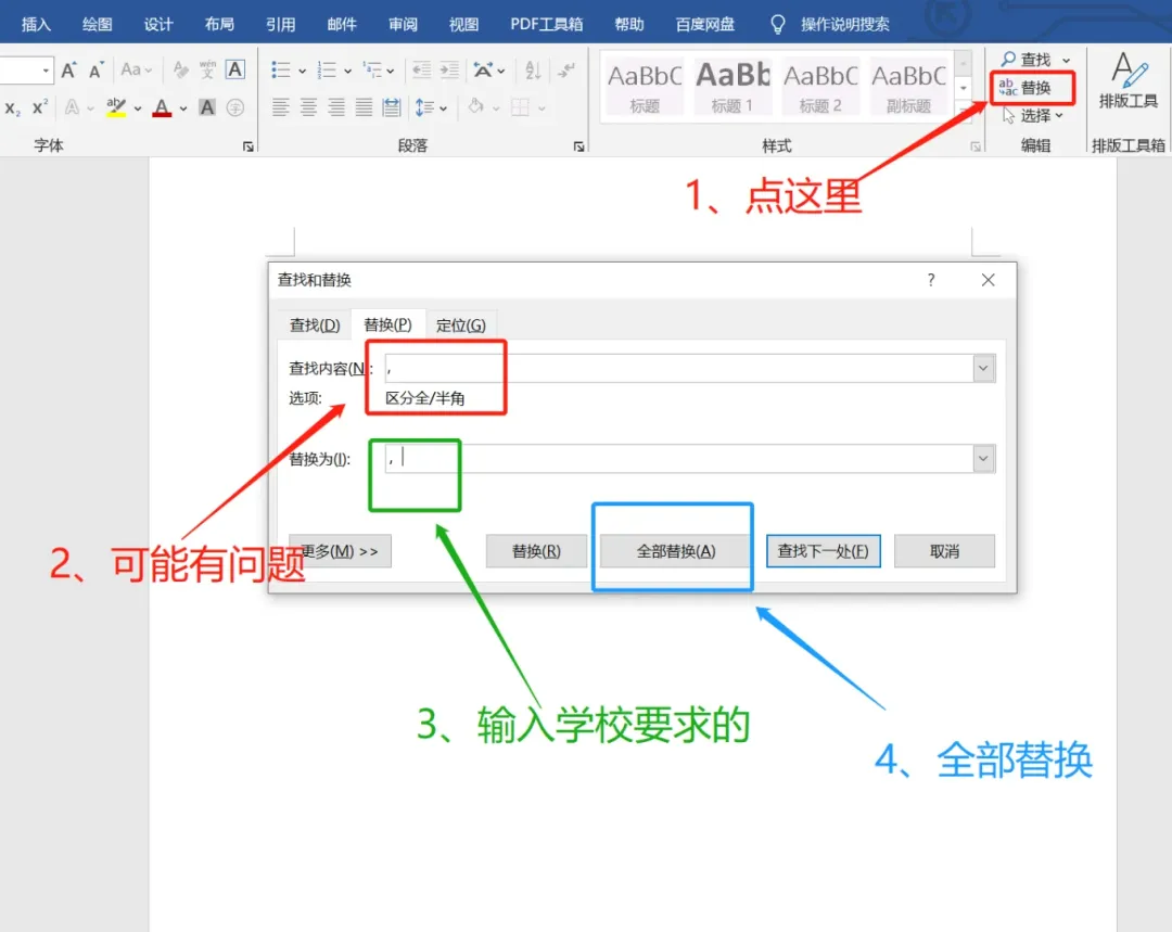 答辩过了,提交论文时,论文格式要求又又又变了,要求吧所有的",",半角符号改为全角符号,怎么一键更新?