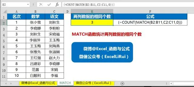 统计两列数据的相同个数