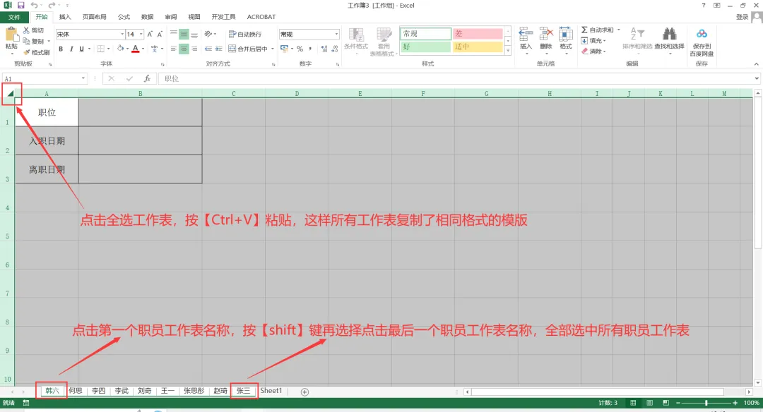 在日常办公中,有时需要制作多个格式相同的Excel工作表,通常我们都是一个个新建然后复制再修改表格内容,这样操作如果数量较多就十分浪费时间,那么如何能快速创建多个相同格式的工作表呢?下面就举例给大家分享一下设置方法。例:给公司所有职员都创建一个独立的入职信息工作表。