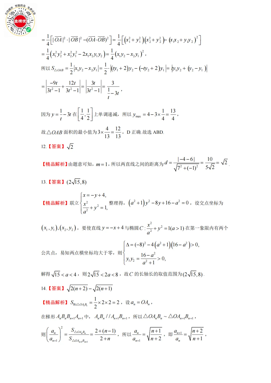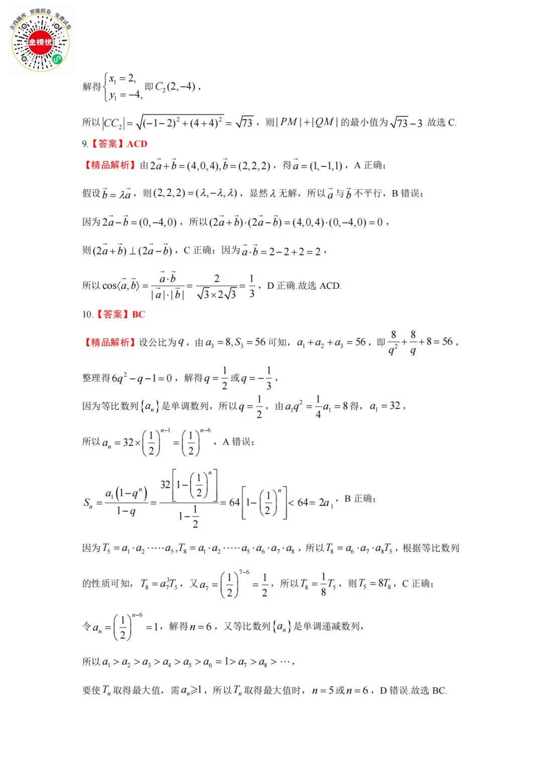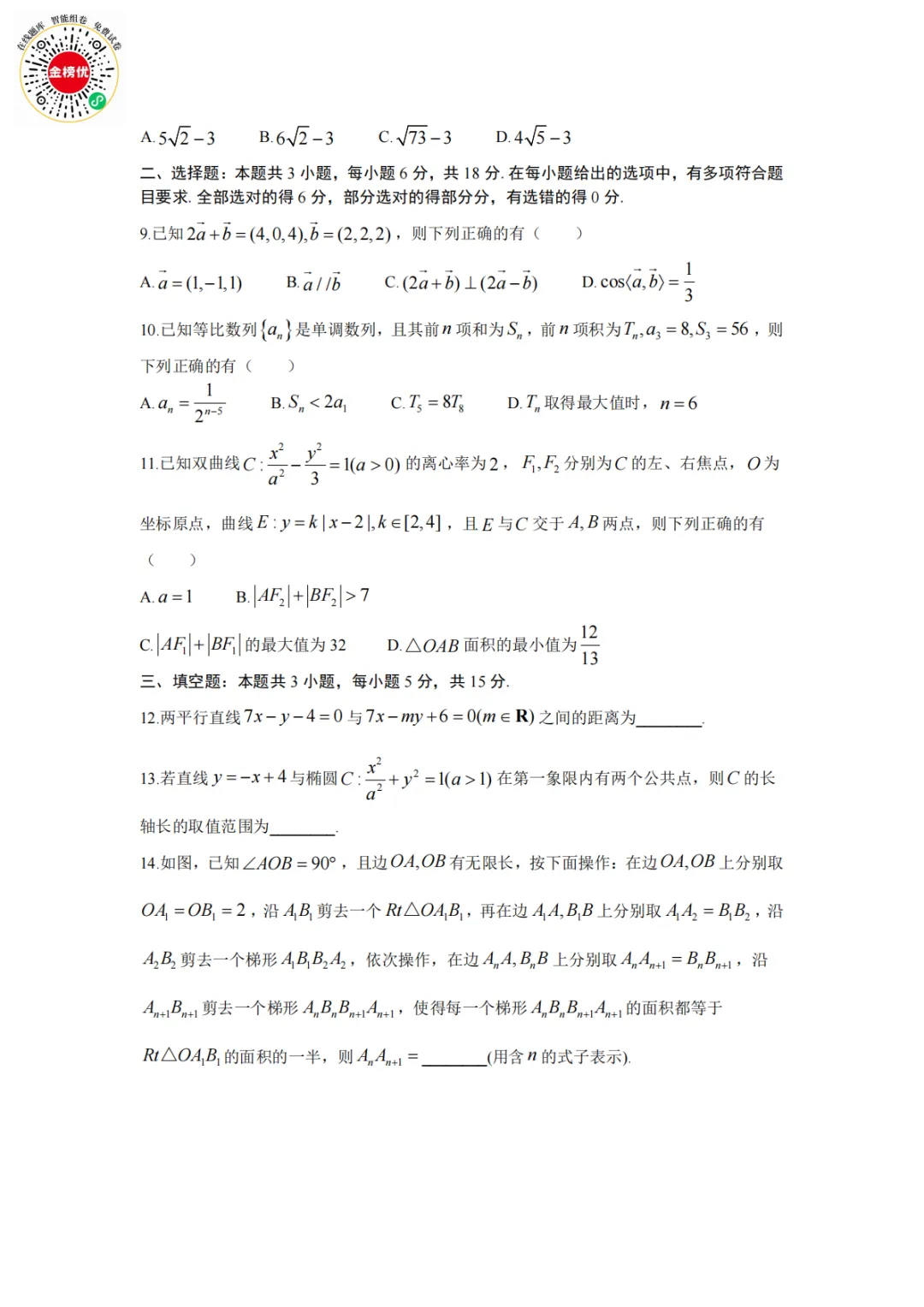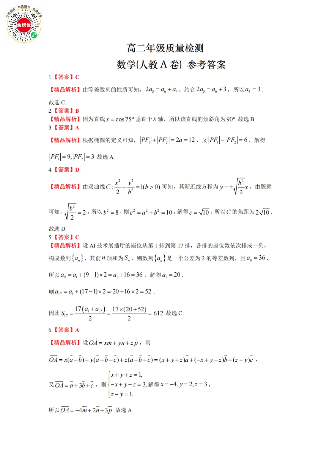 【精品word版】2026年1月青桐鸣高二联考数学试卷+答案