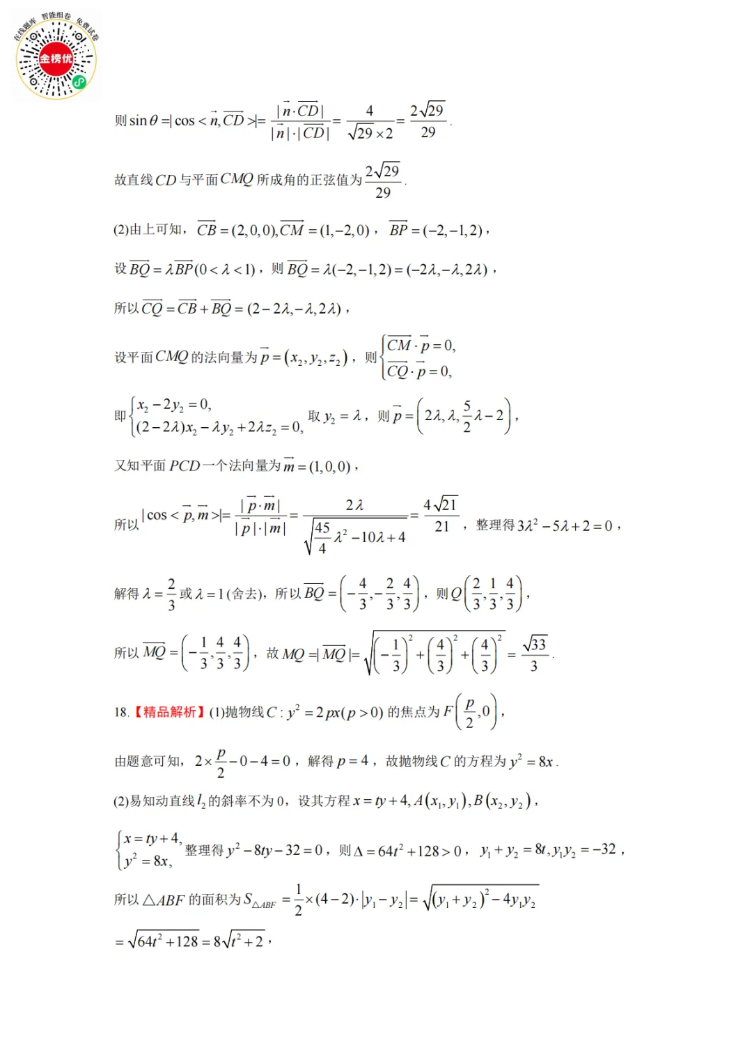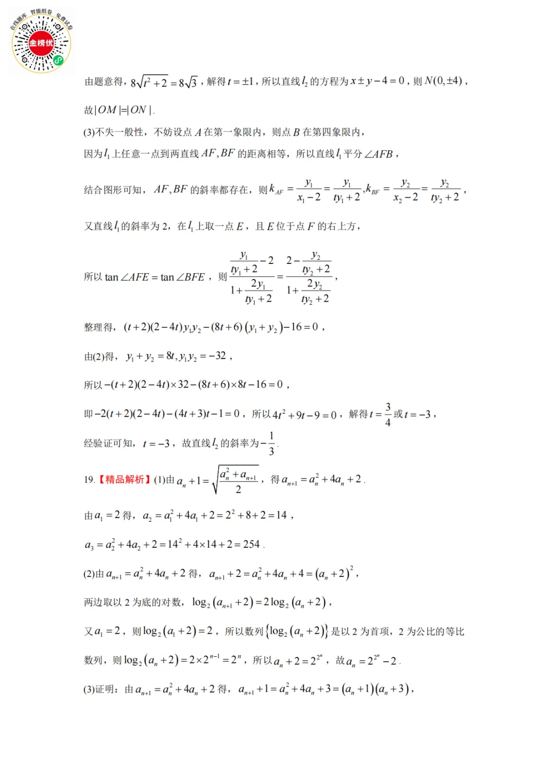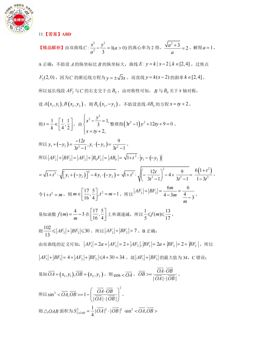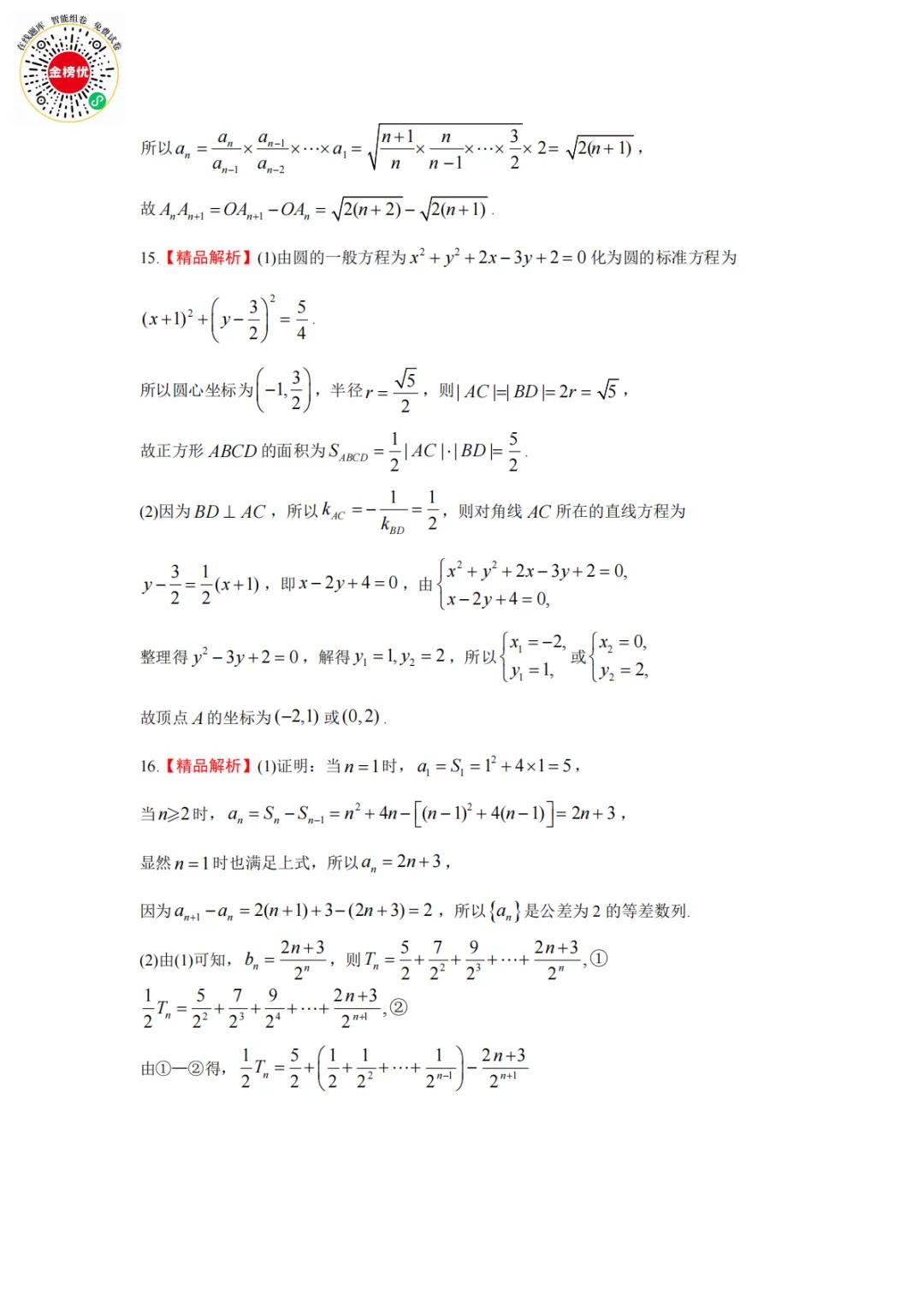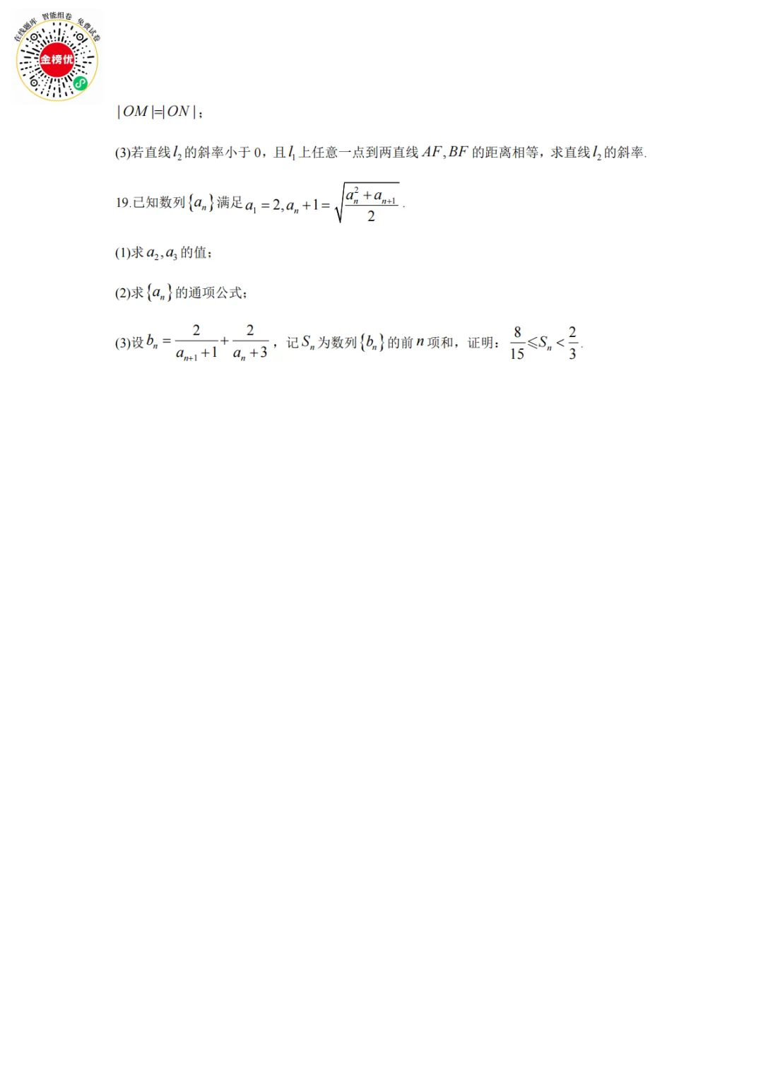 【精品word版】2026年1月青桐鸣高二联考数学试卷+答案