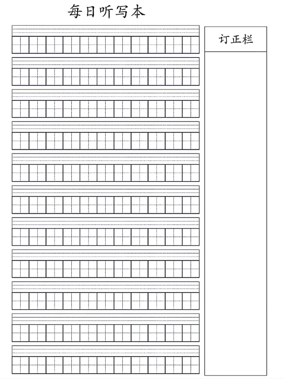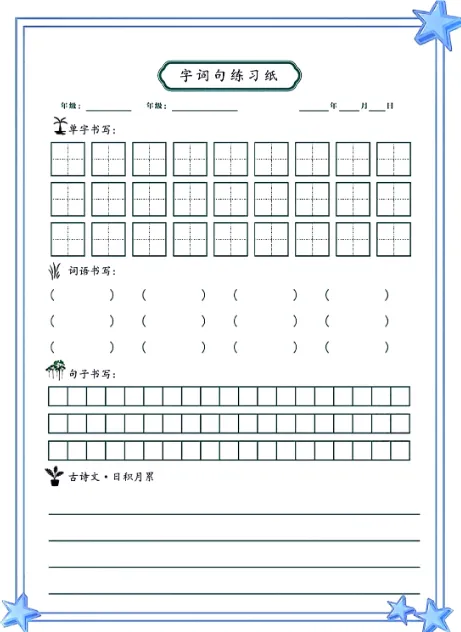 还有词语听写、诗词默写等每日练习模板,都可以打印出来给孩子练习。