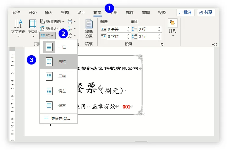 要解决这个问题其实非常简单。只需要在邮件合并前,将布局选项卡中的“栏”,设置为两栏即可。