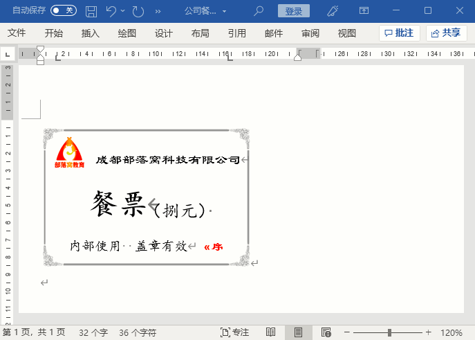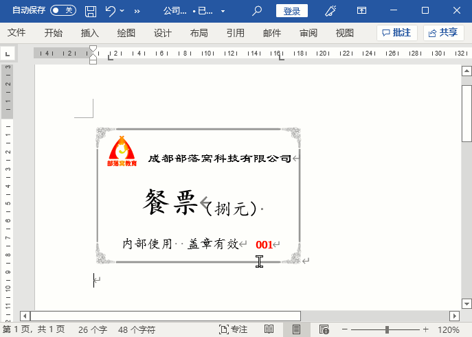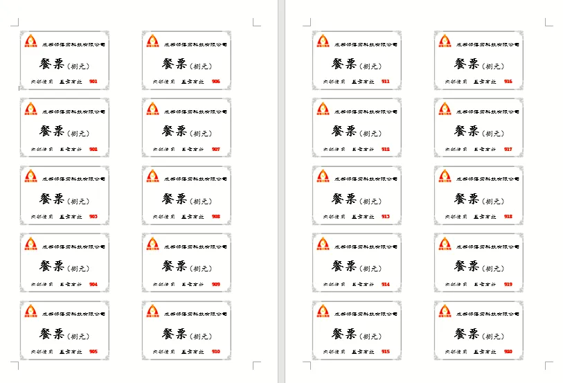 这样,餐票在一页纸上左右并列显示,不仅能够最大化的利用纸张,而且打印出来也方便裁剪。