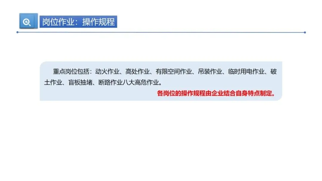 企业重点岗位包含动火、高处、有限空间、吊装、临时用电、破土、盲板抽堵、断路这八大高危作业。这些岗位风险高、隐患多,是企业安全生产的关键管控环节,必须严格按规范操作,把安全关把好。