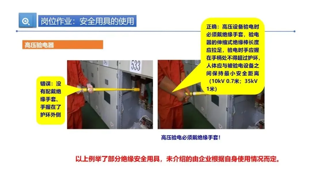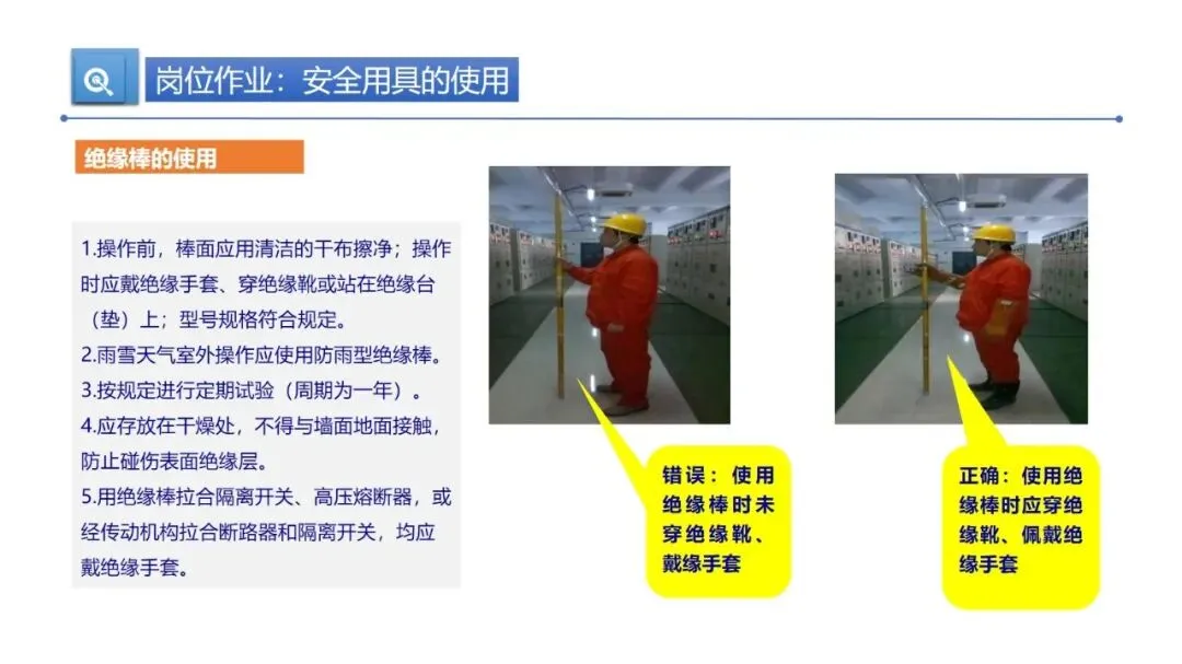 绝缘安全用具是防触电的关键,像绝缘棒、高压验电器、绝缘手套这些,使用时得穿配套防护装备,操作前擦干净绝缘棒,雨雪天室外用防雨型的,还要按规定每年做一次定期试验,存放在干燥处避免绝缘层损坏。高压验电必须戴绝缘手套,手要握在手柄护环内,保持足够安全距离。