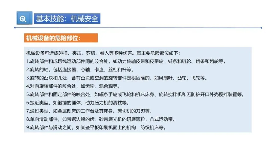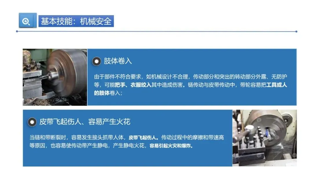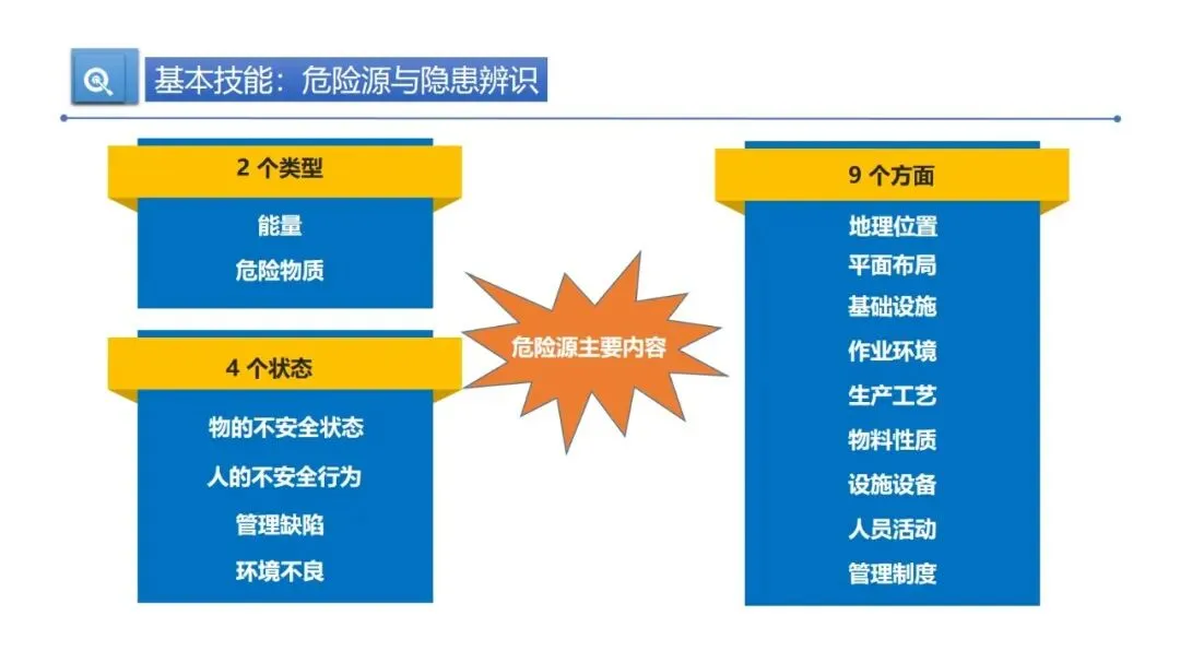 基本安全技能不能少。得会辨识危险源,从物的不安全状态、人的不安全行为、管理缺陷、环境不良四个方面排查,设备要重点关注高温、高压、运动部件等风险点。用电安全要做好绝缘、保持安全距离,机械作业前要检查设备,运转时不能擅离岗位、不用手调整,防火防爆要控制火源、阻止火焰蔓延,配齐消防设施。