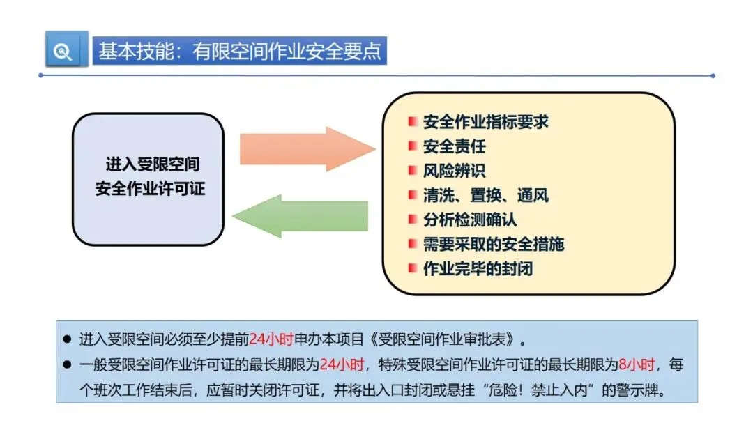 专项作业有特殊要求。有限空间作业要提前 24 小时办《受限空间作业审批表》,清洗置换、检测合格才能作业;高处作业人员得持证上岗、定期体检,穿戴好防护用品,六级以上大风等恶劣天气不能作业;吊装作业要严格遵守 “十不吊” 原则,指挥信号要明确、捆绑要牢固。