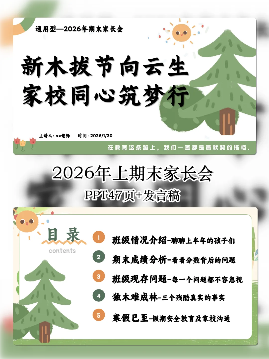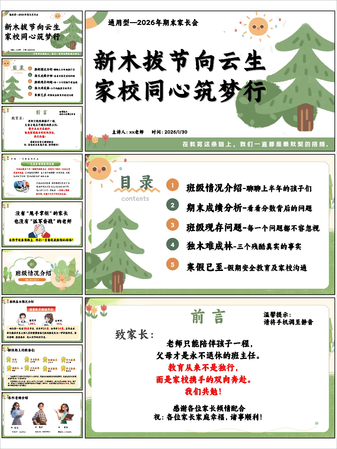 📌 资料名称:【通用】【上期末】家长会《新木拔节向云生,家校同心筑梦行》 📌 资料包含内容:PPT+发言稿