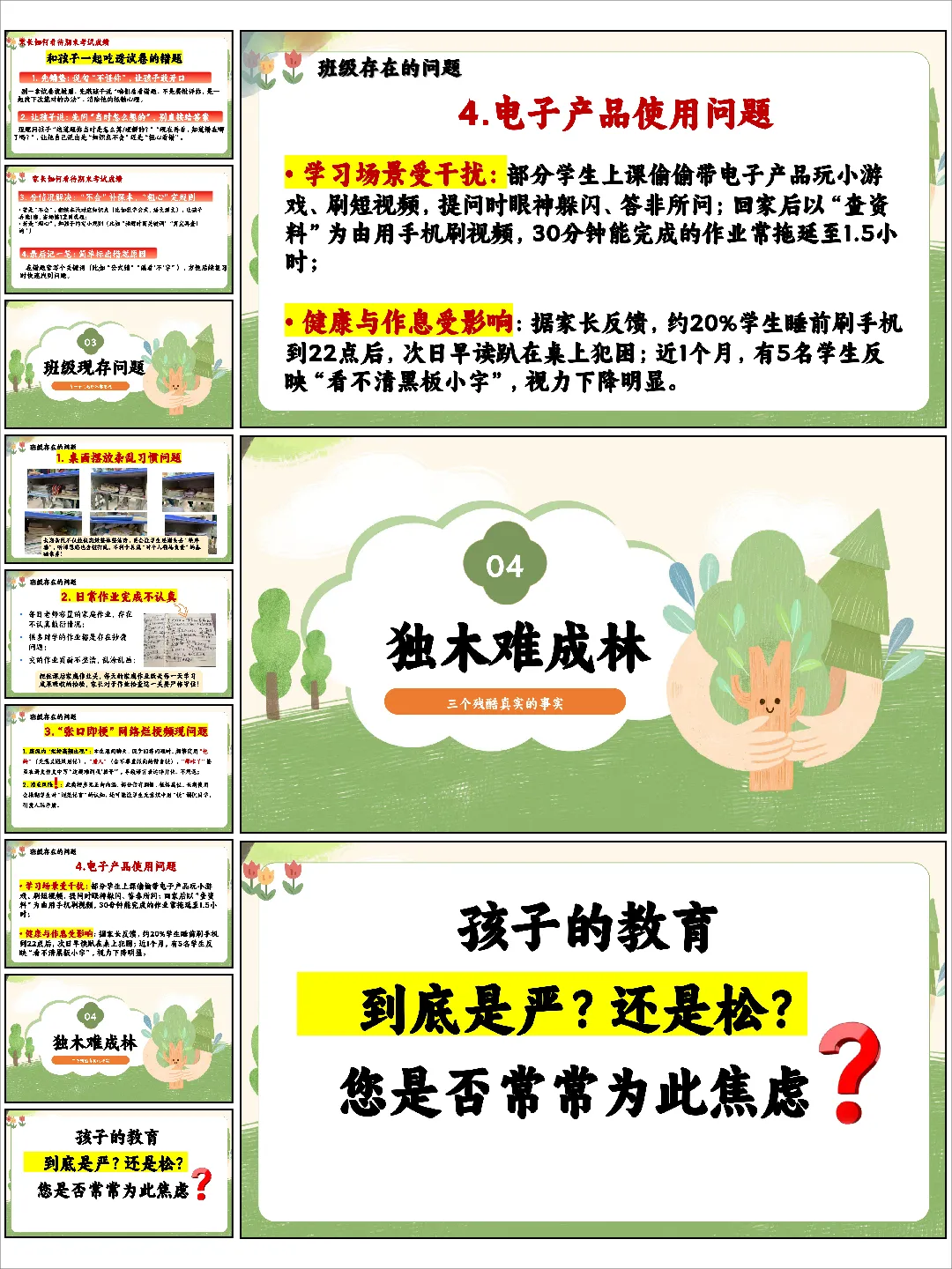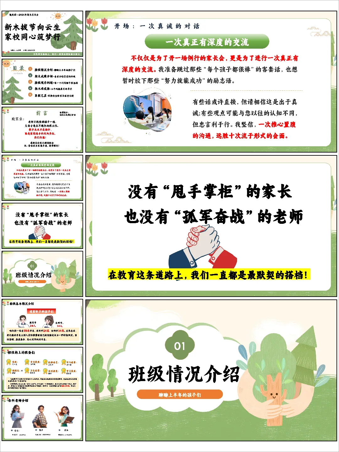 这份《新木拔节向云生,家校同心筑梦行》资料给出了不一样的答案。它以“新木拔节”为隐喻,将关注点从试卷上的数字转移到孩子人格的塑造与习惯的养成上。发言稿中那句“没有‘甩手掌柜’的家长,也没有‘孤军奋战’的老师”,瞬间定义了健康的家校关系。