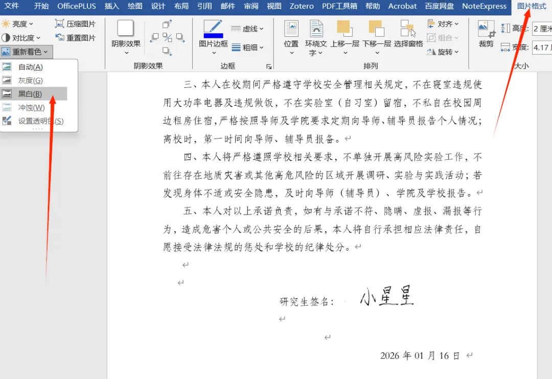 5.但是我之前碰到了这种情况,我手动签名的纸张不是白色的,点了“黑白”后还有很多阴影