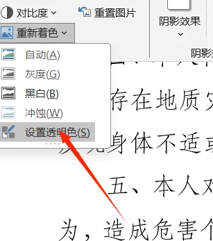 4.重点来了。选中图片,“图片格式”,“重新着色”,“