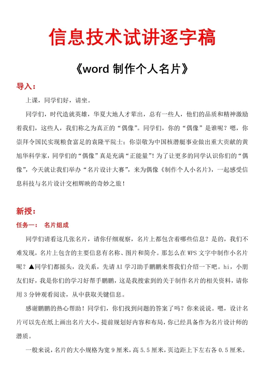 信息技术教资教招面试