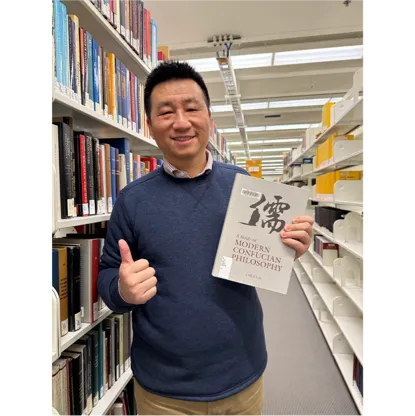 因为是在海边,UBC校园里大雾弥漫。推开图书馆的门,玻璃上凝着一层细密的水珠。我径直走向一楼,进门左手第三排书架——B127.N4 C44 2024——那里安静地立着一本书:《Essential Ideas of Modern Confucian Philosophy》。