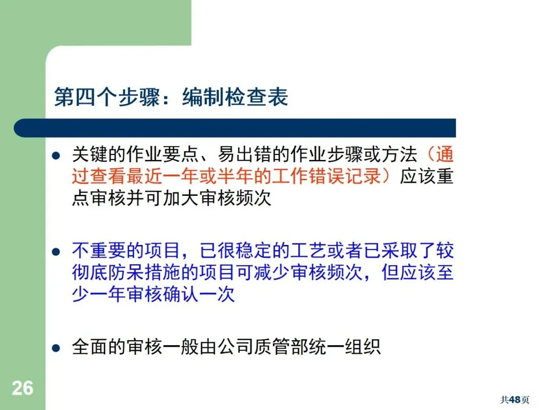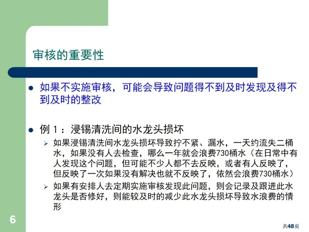 实际操作中应注重以下核心技术:清单应强调要点,增加对高危项目的审核频率,对稳定工序应一年至少进行一次审核;为防止“纸上谈兵”,审核中应对文档和实际操作同时进行核实;例如,在浸锡室的清洁区内,水龙头的破损,可以藉由定期的稽核,来找出问题所在,加以修正,以免造成长久的浪费。建议将后续工作交给独立的第三方,采取当面沟通、电话沟通、邮件沟通相结合的形式,既要考虑到改进的有效性,又要考虑到改进的持久性,防止解决办法无疾而终。