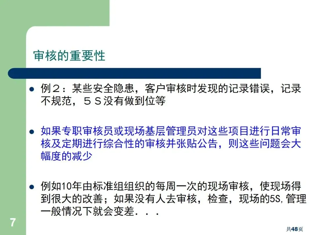内部审核可以通过规范化的程序、科学化的方法,有效地提高质量管理的执行力,对安全隐患和流程缺陷等进行及时的整改,从而保证了质量体系的正常运行,为公司的持续健康发展打下坚实的基础。