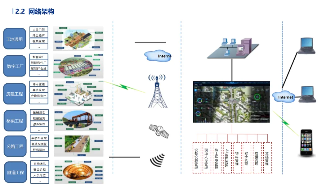 •5G专网保障传输:中国移动在23个省份建成建筑工地5G专网,传输时延低于20ms,支撑高清视频监控、远程协同等实时场景落地。