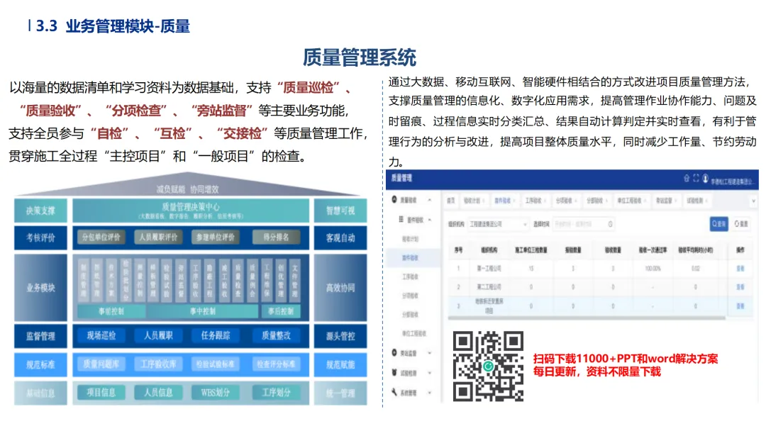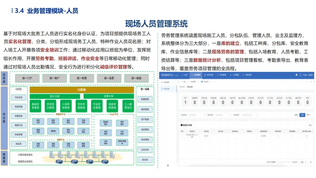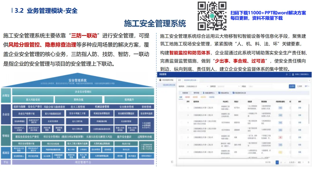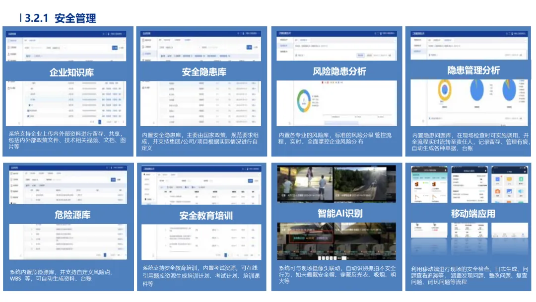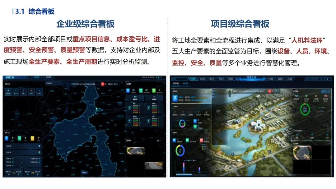 •专项与环保管控规范化:危大工程实时监测位移、沉降数据并触发应急预案;环保模块自动生成合规报表,实现与监管部门平台直连。