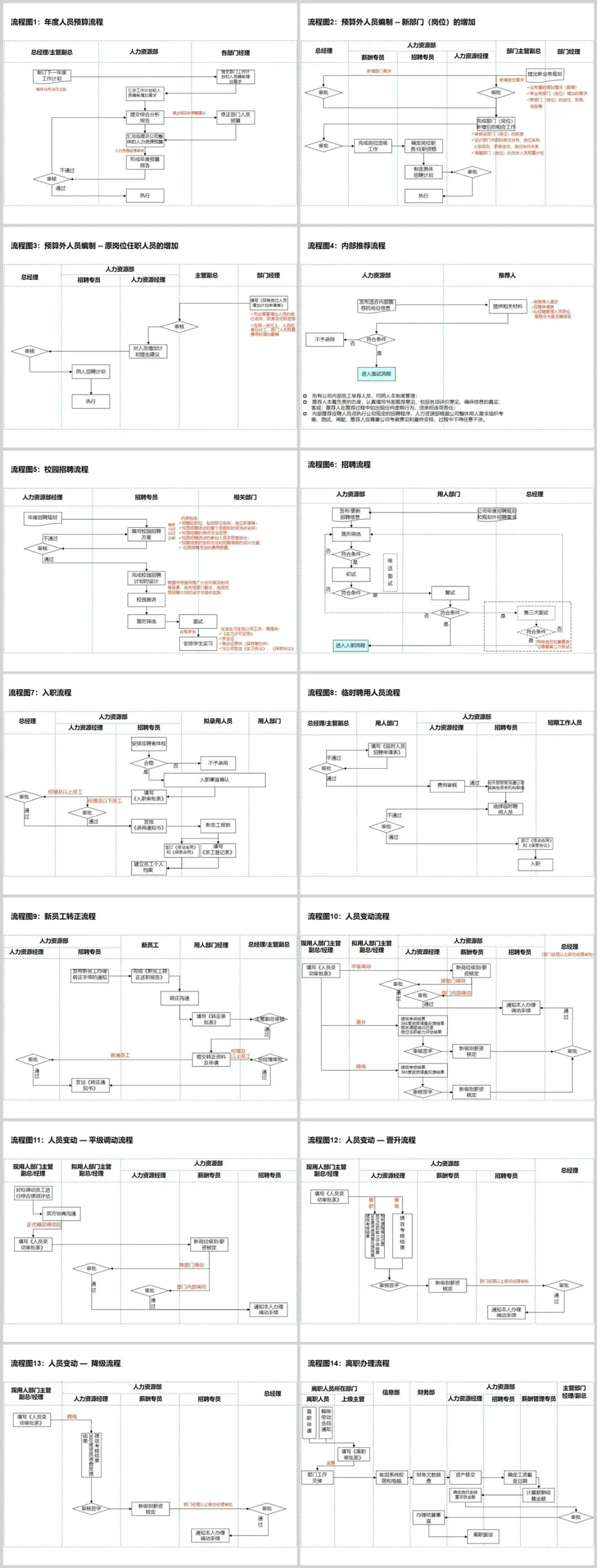 《人资工作流程图》资料包含人力资源六大模块的工作流程图,总共153个文件,300+个流程图,非常全面。