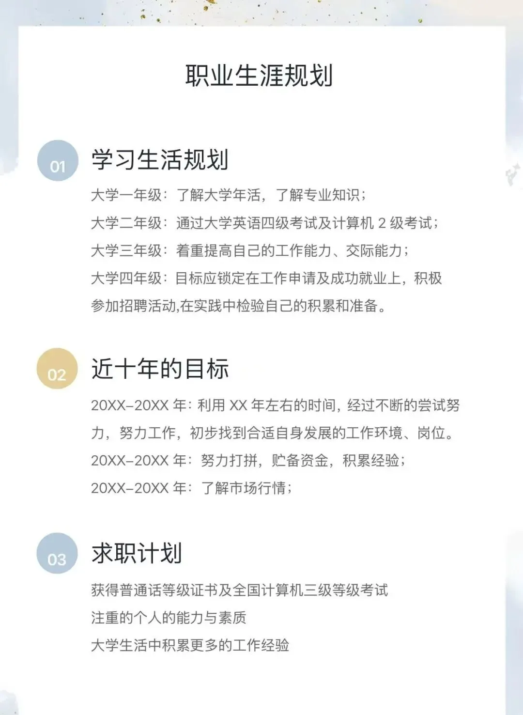 【新】大学生职业生涯规划书word模板(50套精选通用版本,可修改打印,免费下载)