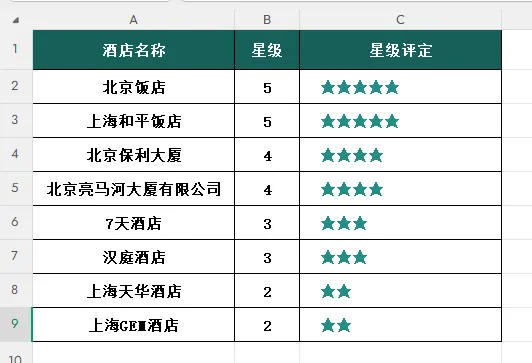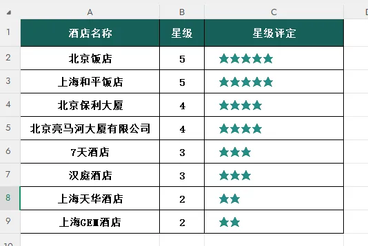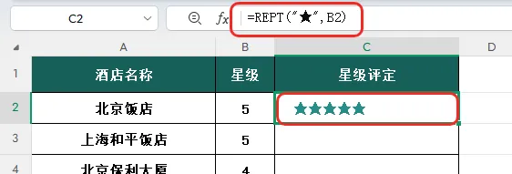 下拉C2单元格,就可完成全部数据的“星级评定”。(如图-05)
