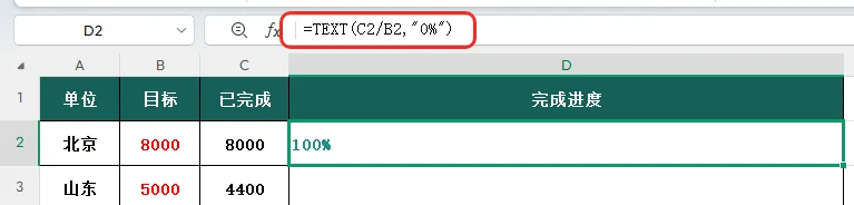 通过公式=TEXT(C3/B3,"0%"),将“数值”变成“百分比”的格式。(如图-09)