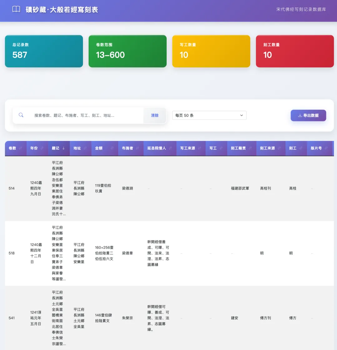 本次示范的《碛砂藏·大般若经》写工、刻工数据库,见页底阅读原文。