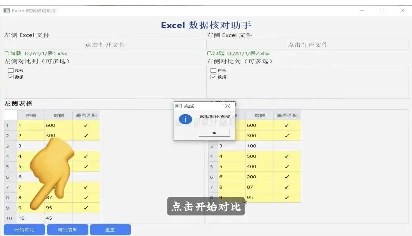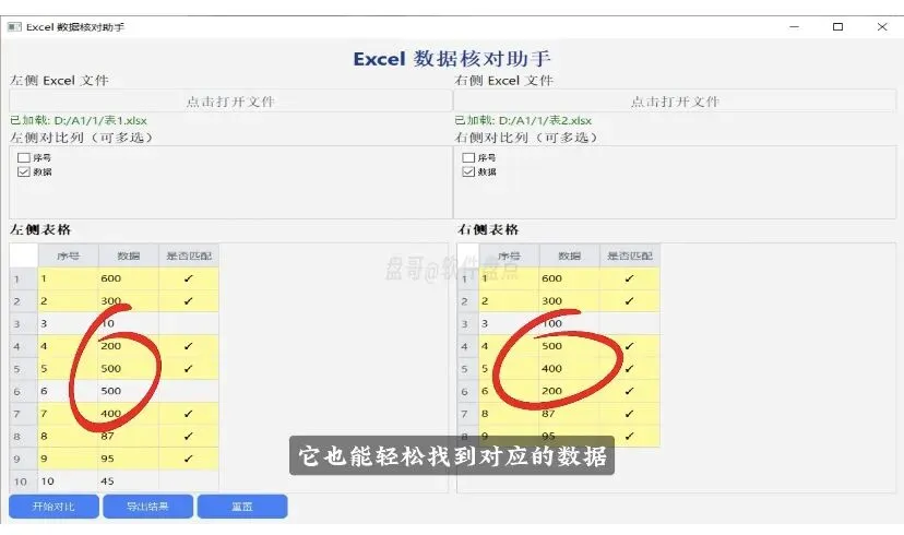 就这么简单!软件会自动帮你找出两个表格中所有的不同之处。
