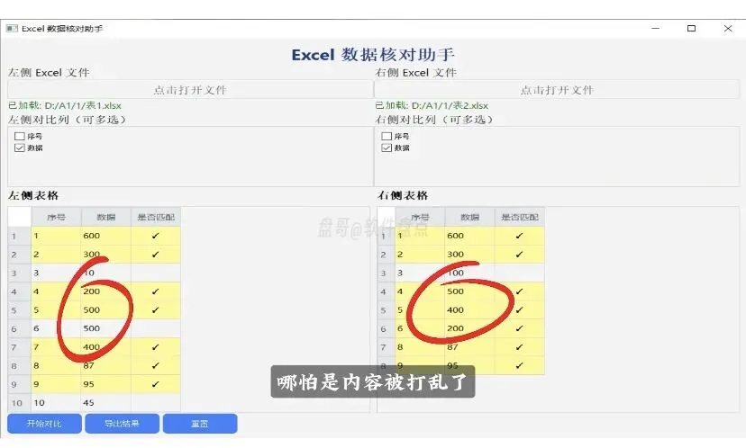 单列对比,乱序也能精准匹配