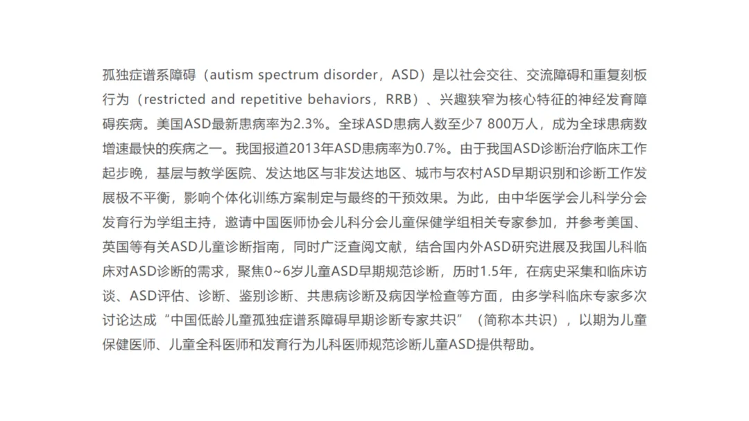 >【PPT电子版分享】中国低龄儿童孤独症谱系障碍早期诊断专家共识