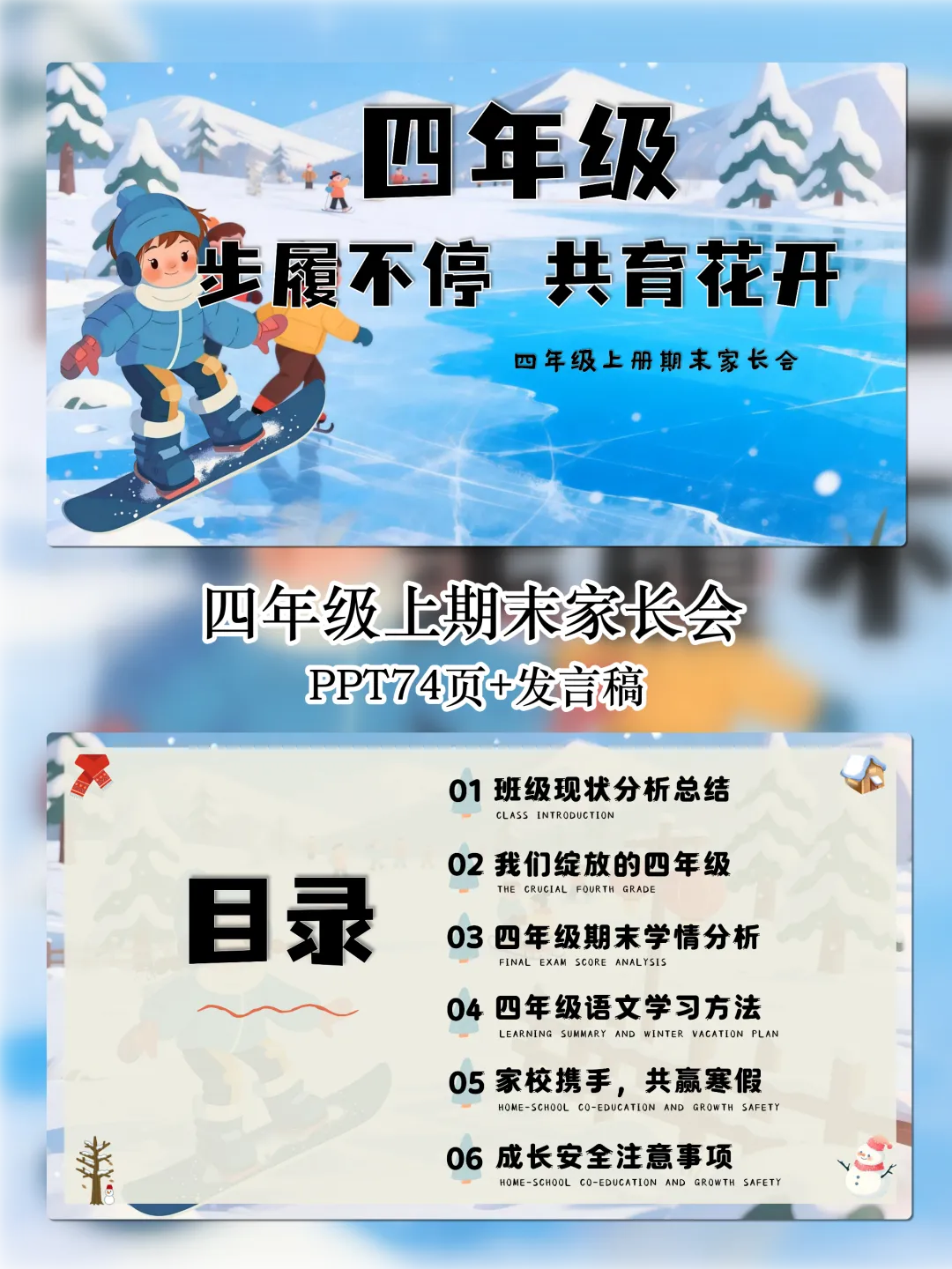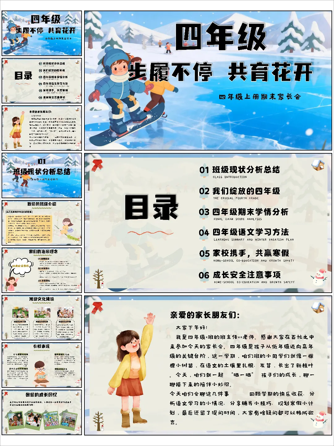 📌 资料名称:【四上期末】家长会《步履不停共育花开》四年级上学期期末家长会 📌 资料包含内容:PPT+发言稿
