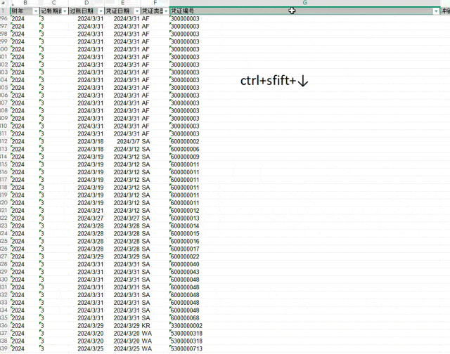 答:ctrl+shift+↓,选中当前单元格到下方连续数据区的最后一个非空单元格。例如,选中G1,再按ctrl+shift+↓,是选中G1到G列最后一个有数据的单元格。