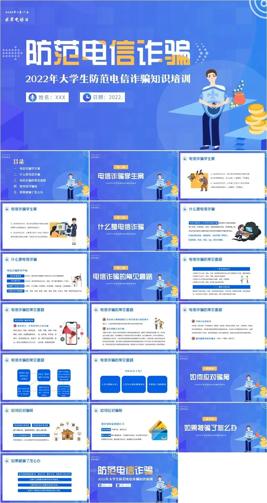 PPT免费分享|50套大中小学生网络安全预防电信诈骗ppt模板,免费分享给大家!