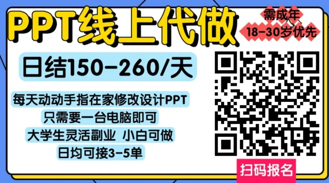 ppt线上代做日结 150-260/天 灵活副业