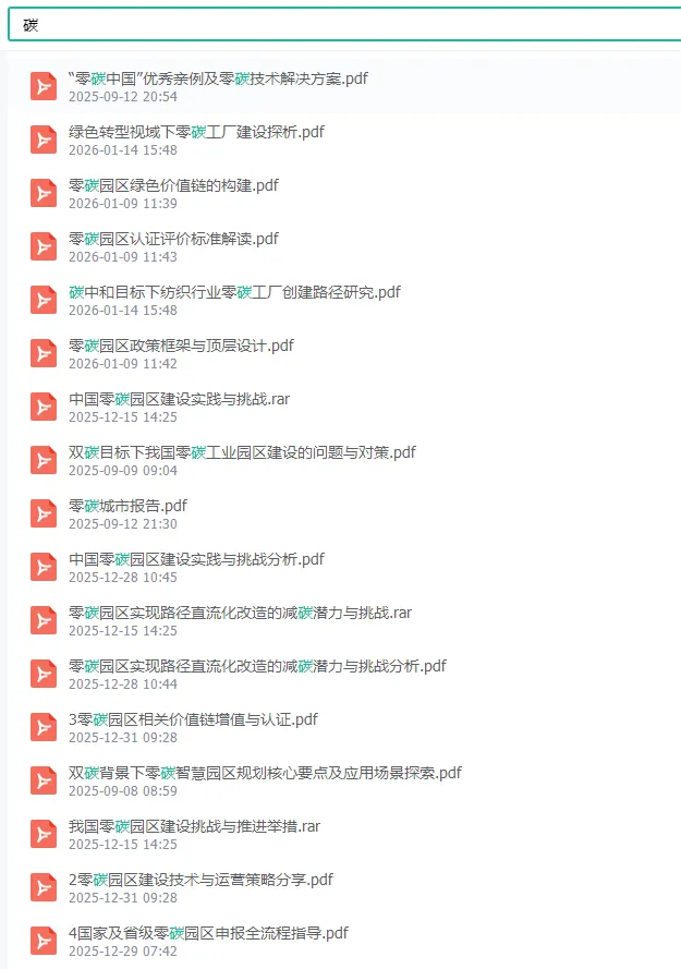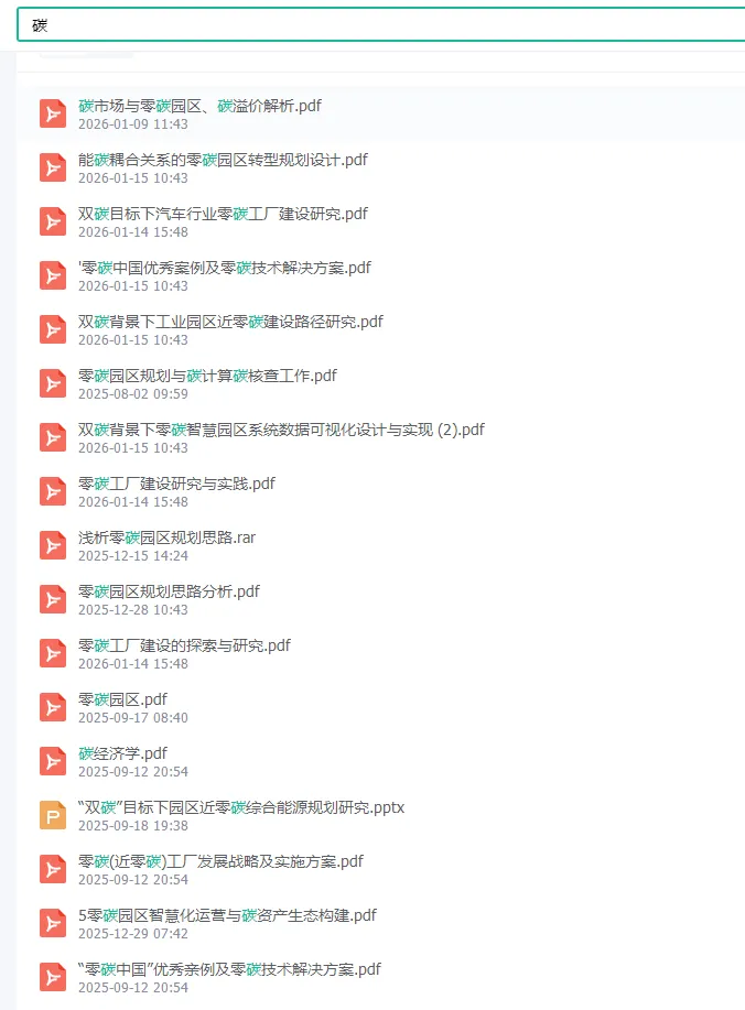 我们创立了一个专业的平台,叫做零碳园区与碳管理资料库,上面上传了几千份关于零碳园区创建、碳资产开发与碳交易、企业碳管理相关的学习文件,大家可以持续的下载学习。大家可以先阅览一下是否有你想要的学习资料