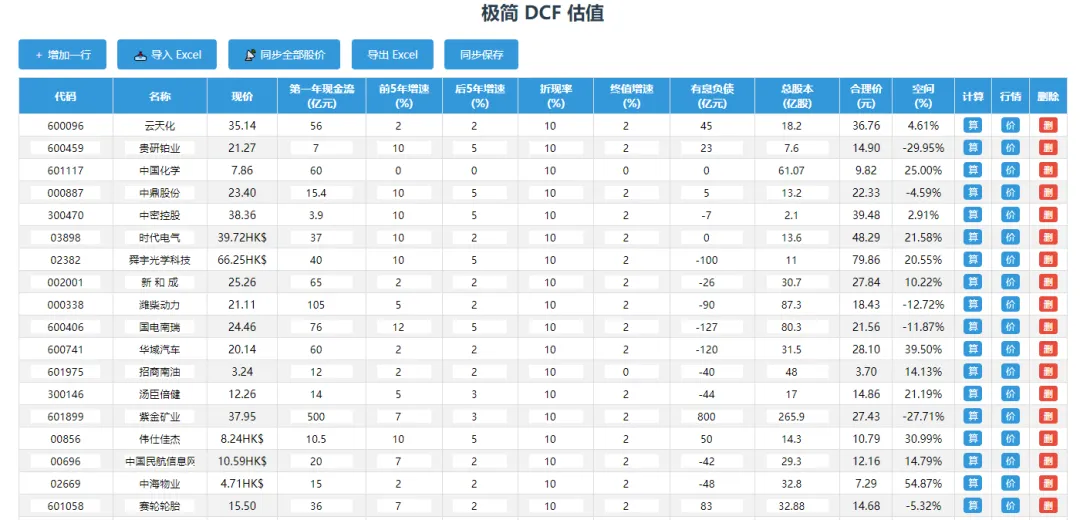 一直到25年之前,我使用的估值模型都是自己用Excel手搓,然后手动更新价格,显得很原始。去年利用AI建立网页版工具之后,一键更新,真香。