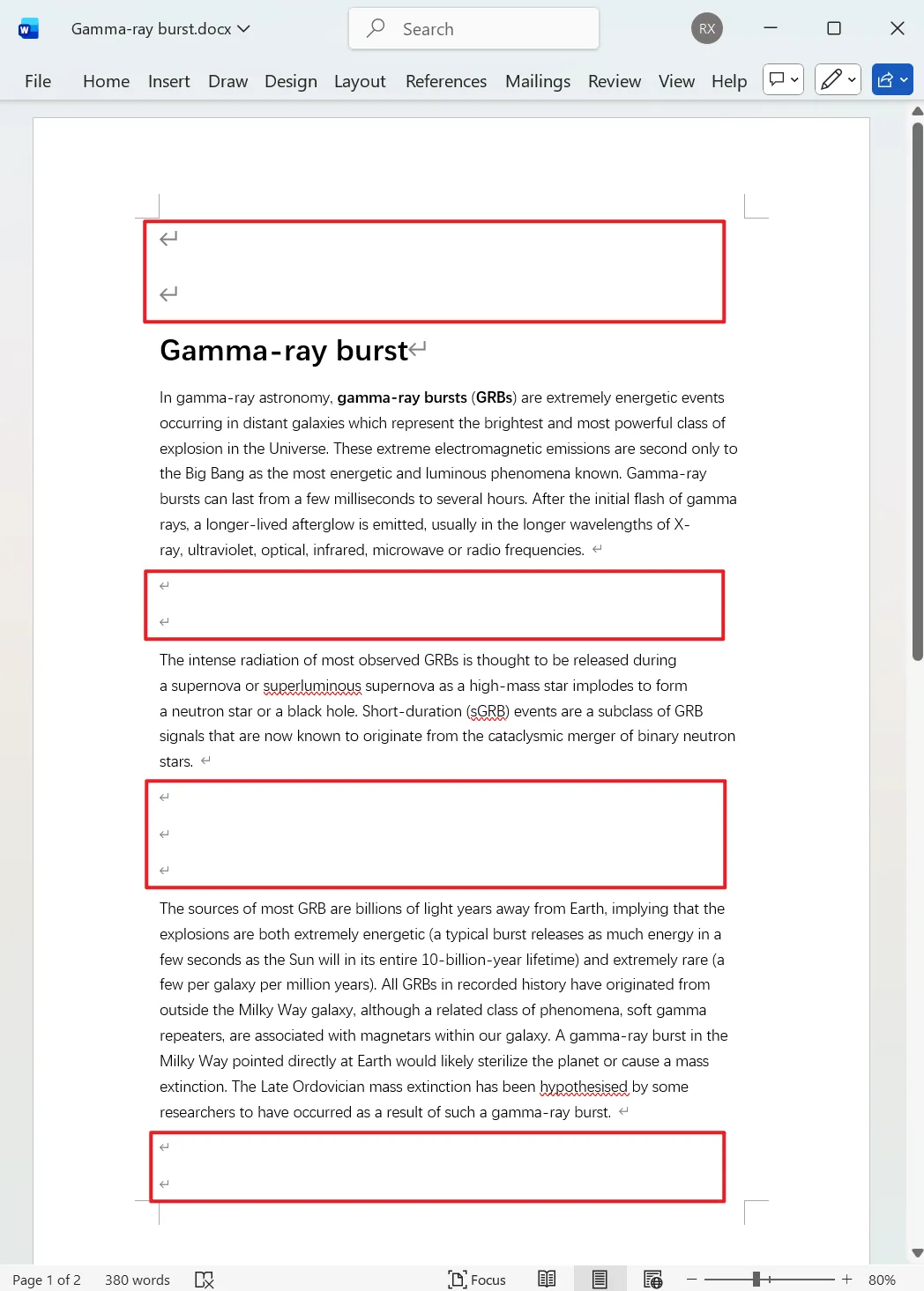Word 文件中常常会因为格式不一致、内容合并或是其它来源粘贴而留存大量多余的空白行,这些没有内容的空白行不仅会破坏原本文档的整体连贯和视觉美观,还会影响文本的结构以及页数的统计。