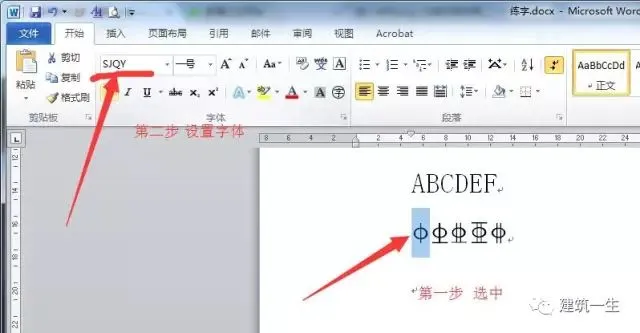 选中对应的字母,然后将字体设置成 SJQY 即可,如图: