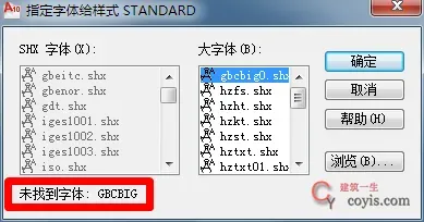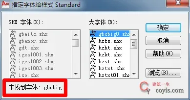 打开CAD图纸后提示——未找到字体:gbcbig。