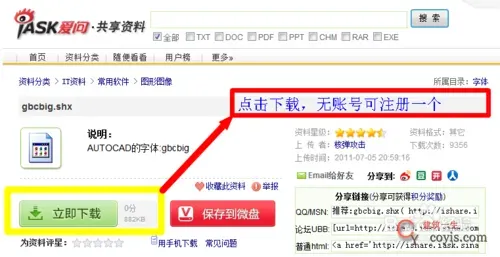 在出现的页面的选择网站下载字体,推荐在新浪爱问共享资料中下载,没有病毒,字体还比较齐全。如果没有账号下载,可以顺手注册一个,方便快捷,有新浪账号的就可以直接登录了。另外如果积分不够,可以每天到新浪爱问共享资料的首页签到一下,就可以获取大量积分,足够使用了。