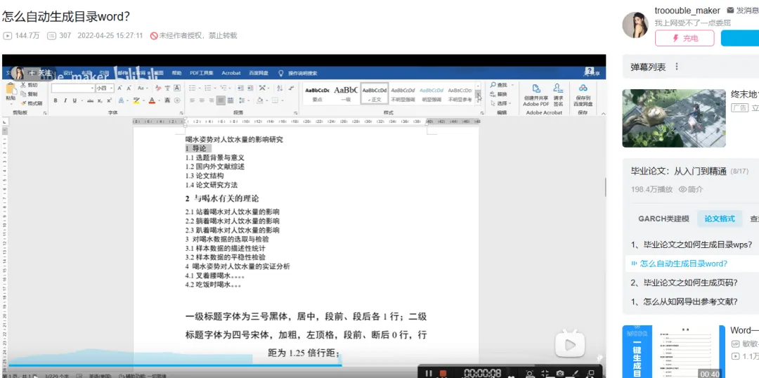 【怎么自动生成目录word?】 https://www.bilibili.com/video/BV1Yu411k7Dy/?share_source=copy_web&vd_source=d318ad520c283a779866accb2b5eeb7f