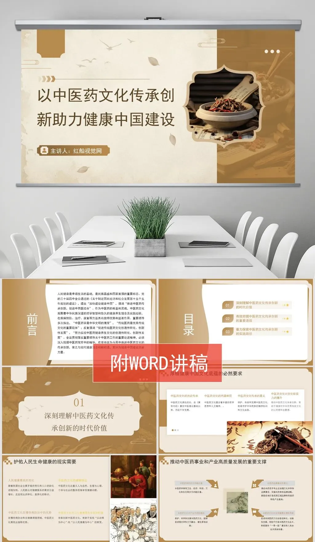 本课件主要内容为以中医药文化传承创新助力健康中国建设PPT课件,讲稿字数:5081字。