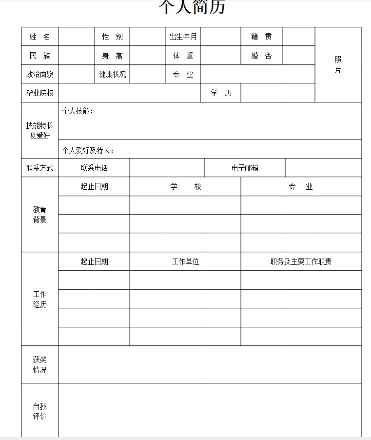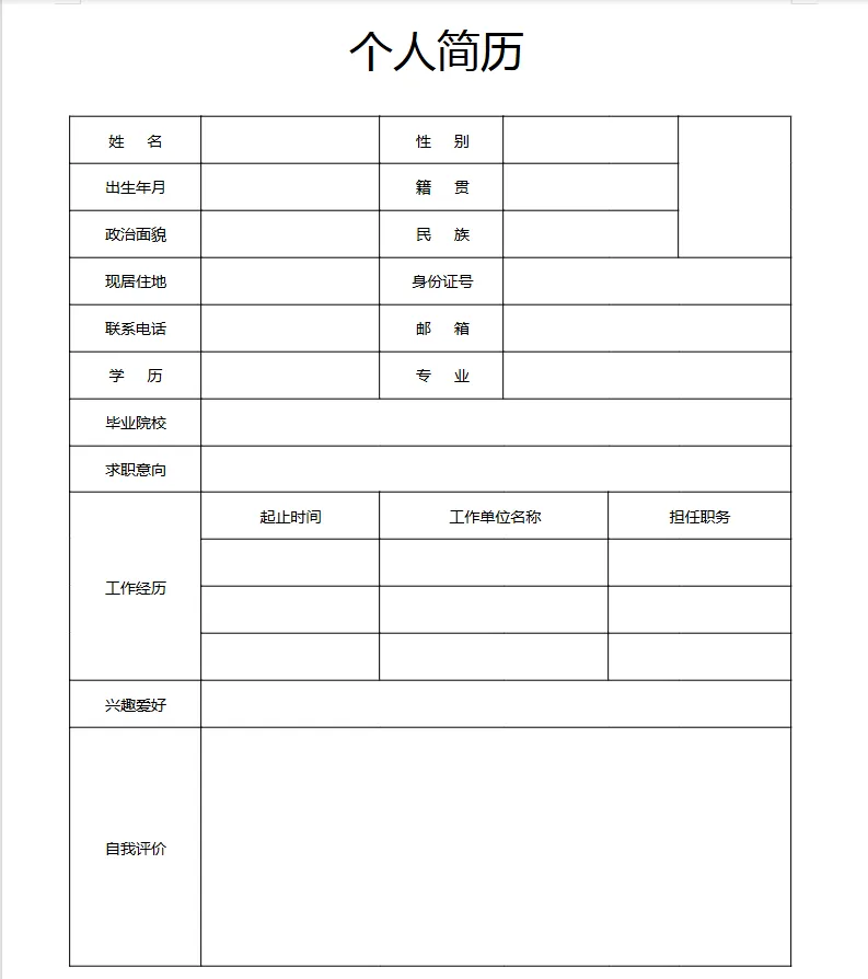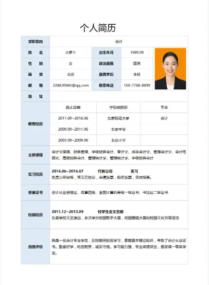 的完整范文,内容涵盖基本信息、教育经历、工作经历、技能与证书、项目经历以及自我评价等常见模块
