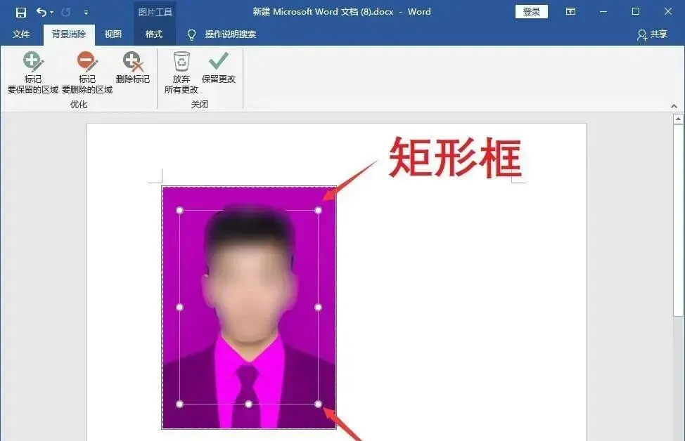 ②这时候图片中会出现一个矩形框,我们将这个方框拉满覆盖整张照片,这样就可以自动删除照片背景了。